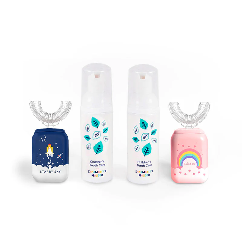 Belli Denti è uno spazzolino a U in silicone per bambini, clinicamente testato per pulire ogni parte dei denti (compreso il lato posteriore, fino ai molari posteriori). È realizzato in modo tale che ogni parte dello spazzolino funzioni come se si stessero usando contemporaneamente 20 spazzolini normali, riducendo così il tempo di pulizia a soli 30 secondi.